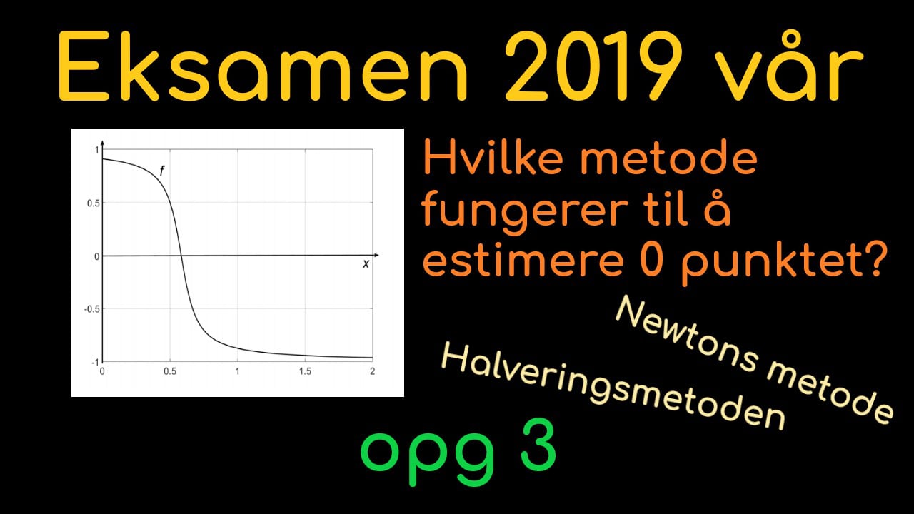 Vi får oppgitt 4 forslag til å estimere nullpunktet til funksjonen som er tegnet opp. Nå må vi se hvilke av forslagene som kommer til å fungere og hvilke som ikke fungerer og forklare hvorfor!