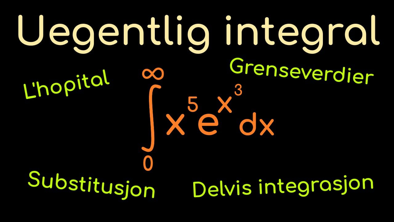 Vi løser dette uegentlige integralet hvor vi benytter oss av L'hopital, grenseverdier, substitusjon og delvis integrasjon. Eksamen mars 2017 oppgave 7