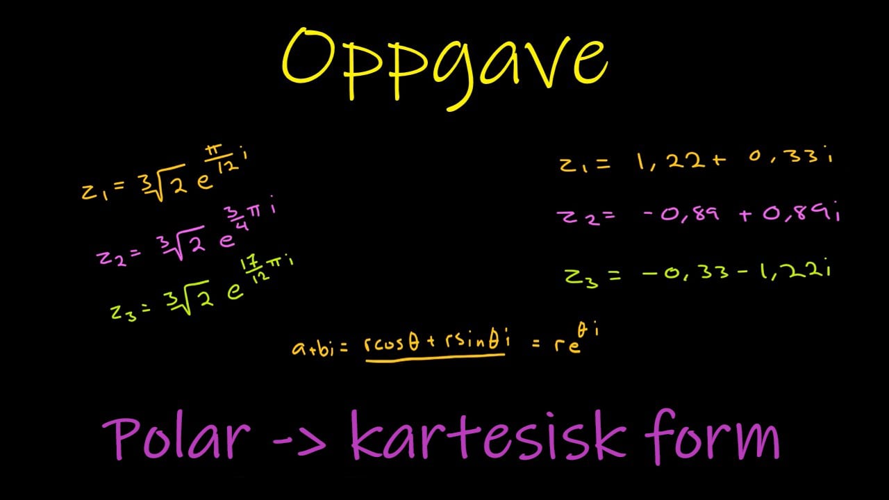 Nå ser vi hvordan man enkelt kan gå fra polar form til kartesisk form. Vi benytter oss av svaralternativene fra den første oppgaven.