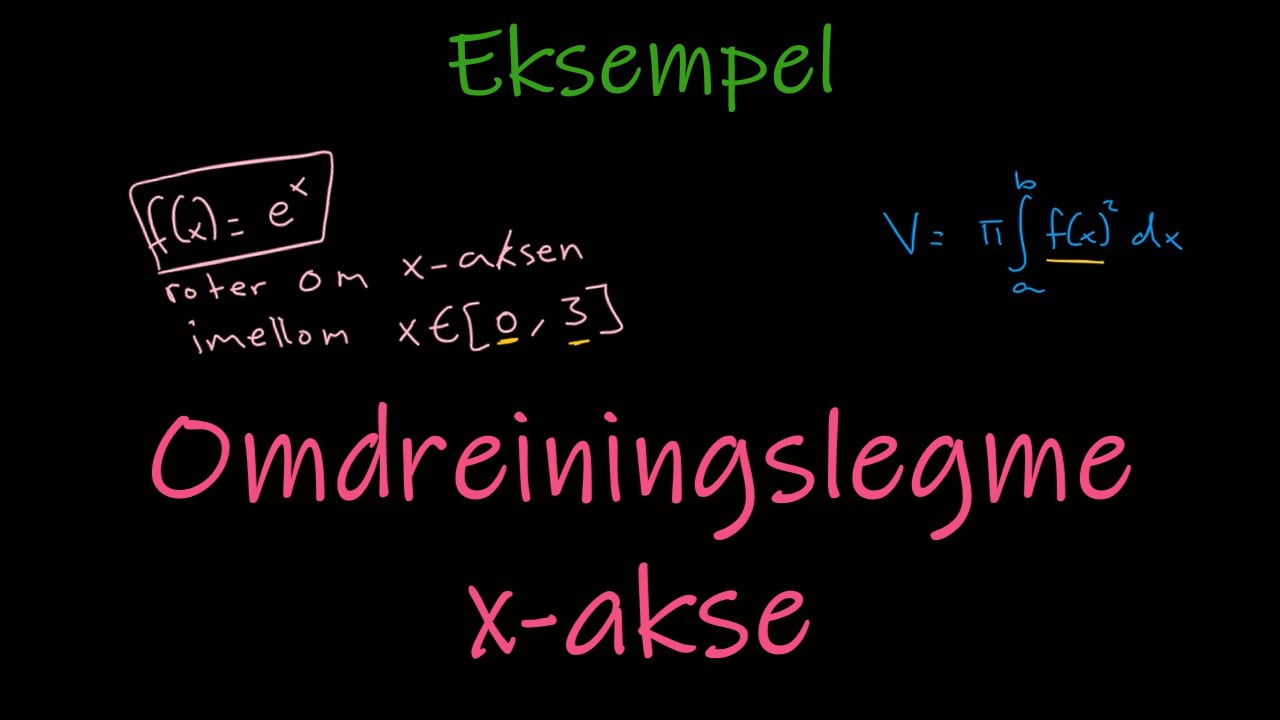 Et eksempel hvor vi dreier en funksjon om x-aksen ved å bruke formelen vi utledet!