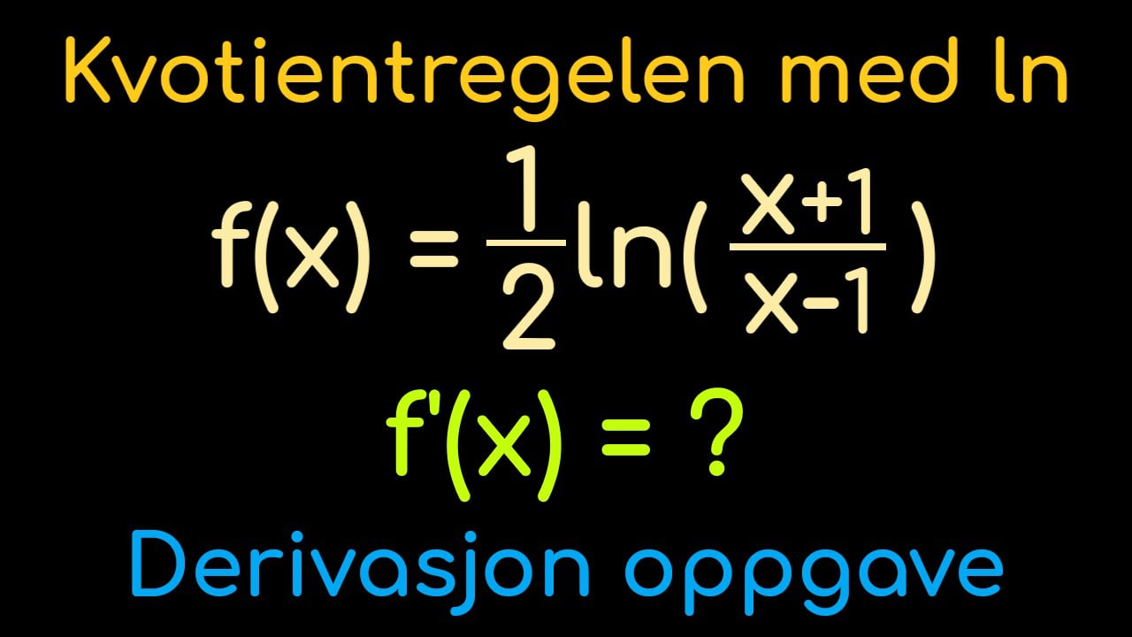 Kvotientregelen - Derivasjon oppgave - 05 ln ( x + 1 x - 1 )