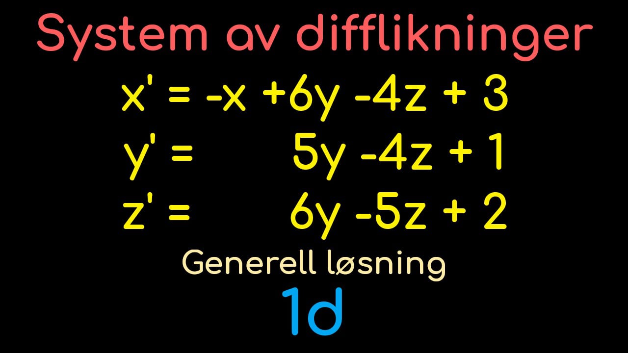 Oppgave 1d - System av differensiallikninger - Generell løsning - Prøveeksamen 2020 (BYPE 2000)