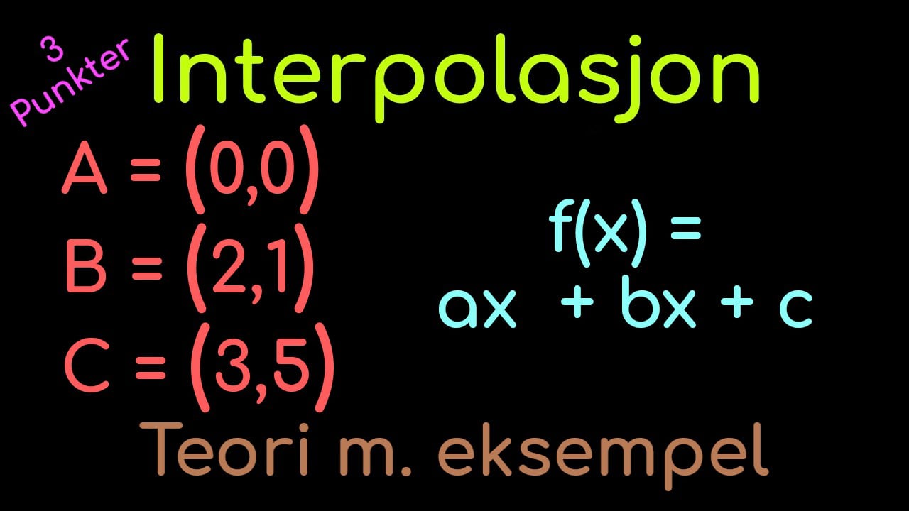 Nå går vi igjennom hvordan man finner et polynom som interpolerer 3 forskjellige punkter!