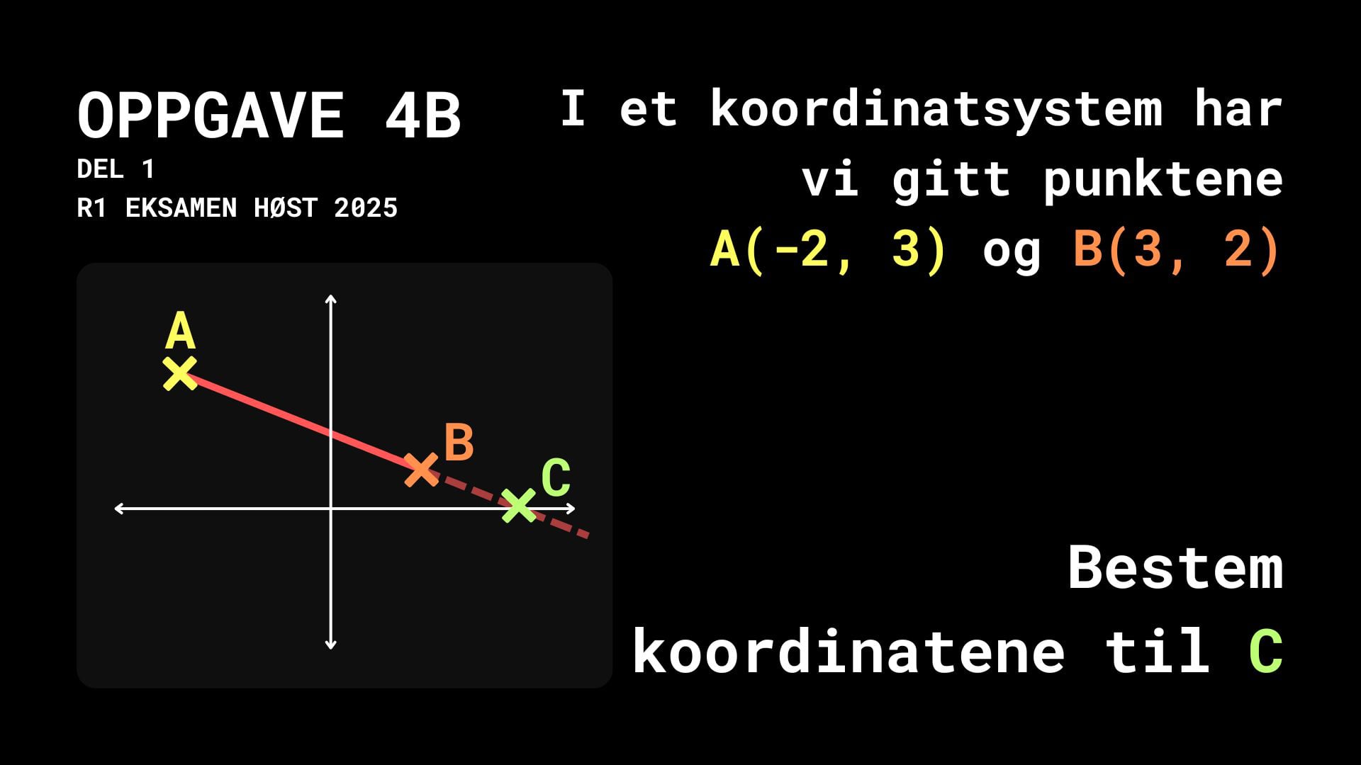 I et koordinatsystem har vi gitt punktene A(-2, 3) og B(3, 2).