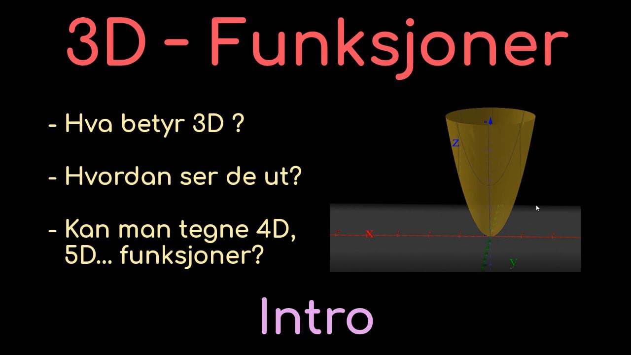 Hva er en 3D funksjon? Hvordan ser de ut? Kan man tegne opp funksjoner med flere dimensjoner enn 3?