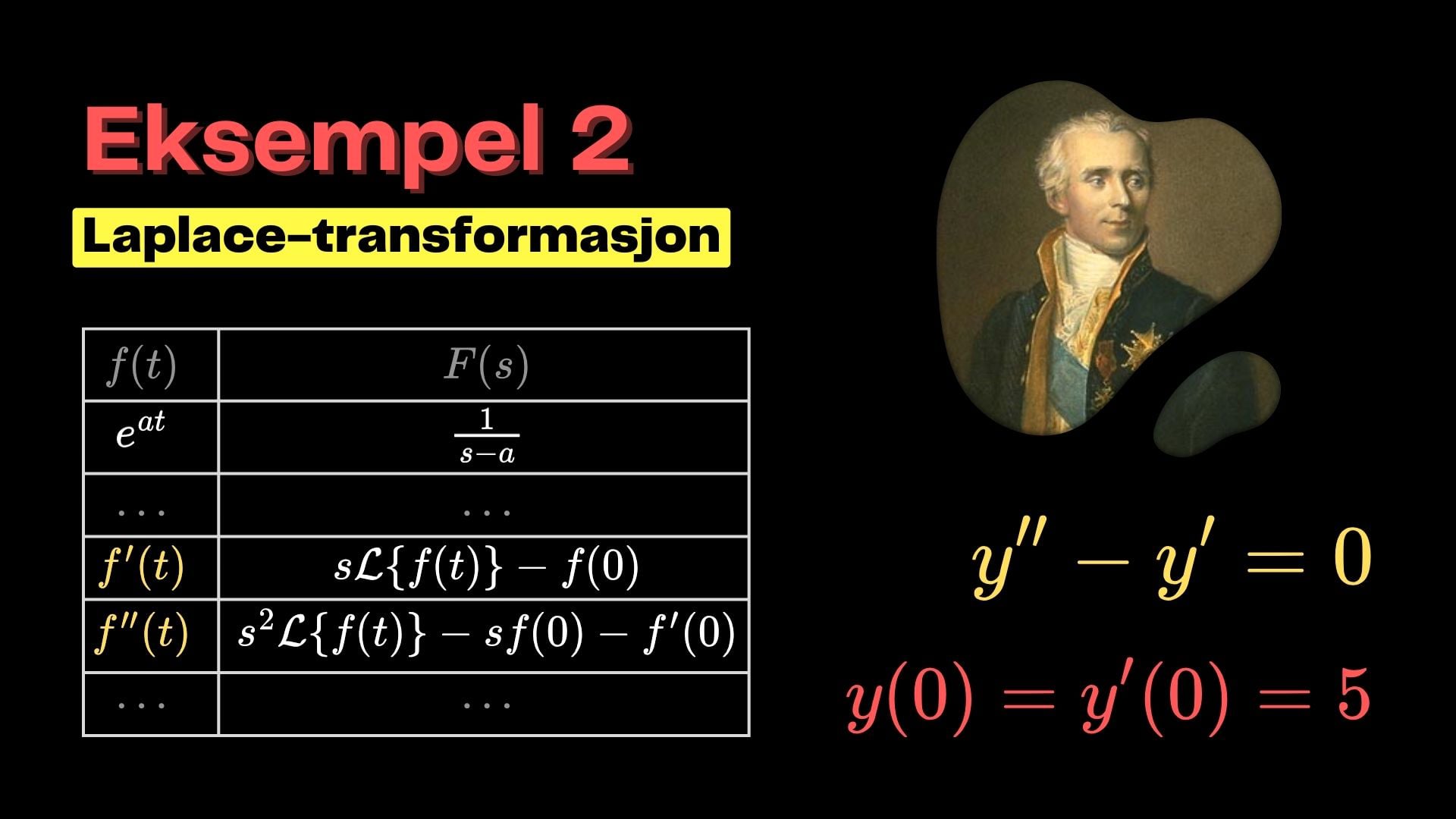 I dette eksempelet løser vi differensiallikningen y'' - y' = 0 med initialbetingelsen y(0) = y'(0) = 5 ved hjelp av laplace-transformer. Her får vi en konstant ganget med funksjonen vi tar invers laplace-transformasjon til. Hva gjør vi da?