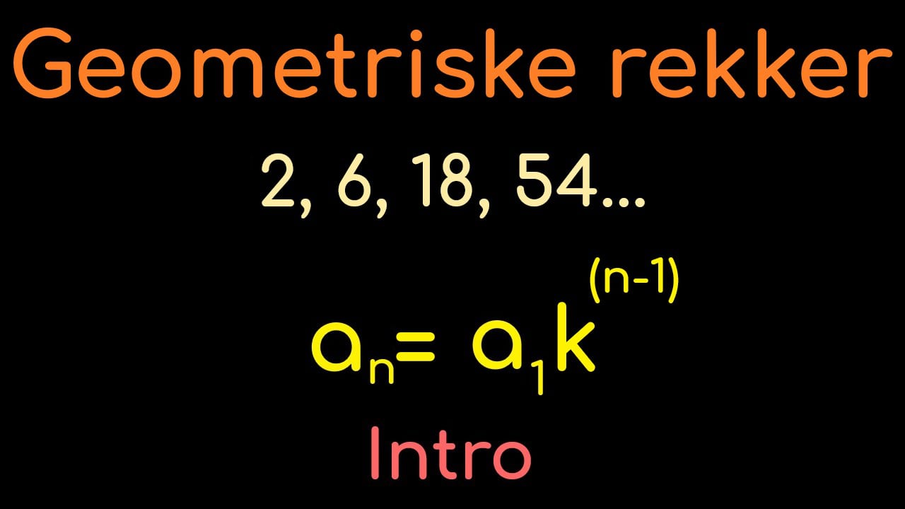 I denne videoen introduserer vi geometriske rekker og kommer frem til en generell formel som vi kan bruke for å finne det n'te leddet i hvilke som helst geometriske rekke. I tillegg viser vi også hvordan man identifiserer en geometrisk rekke ! :))