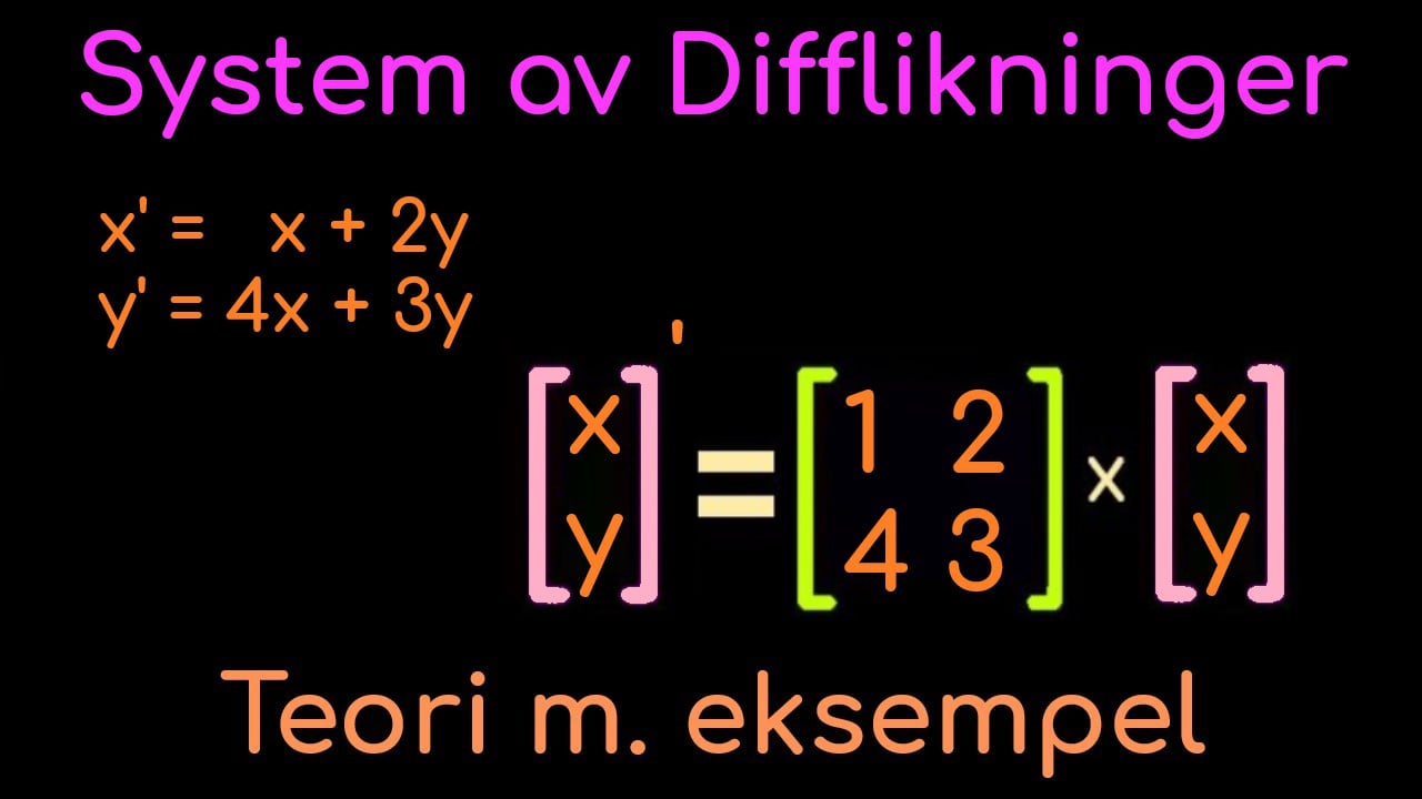 Her går vi igjennom et eksempel hvor vi løser et system av difflikninger. Vi skriver også opp den generelle løsningen og viser hvordan vi setter opp matrisene!! :)