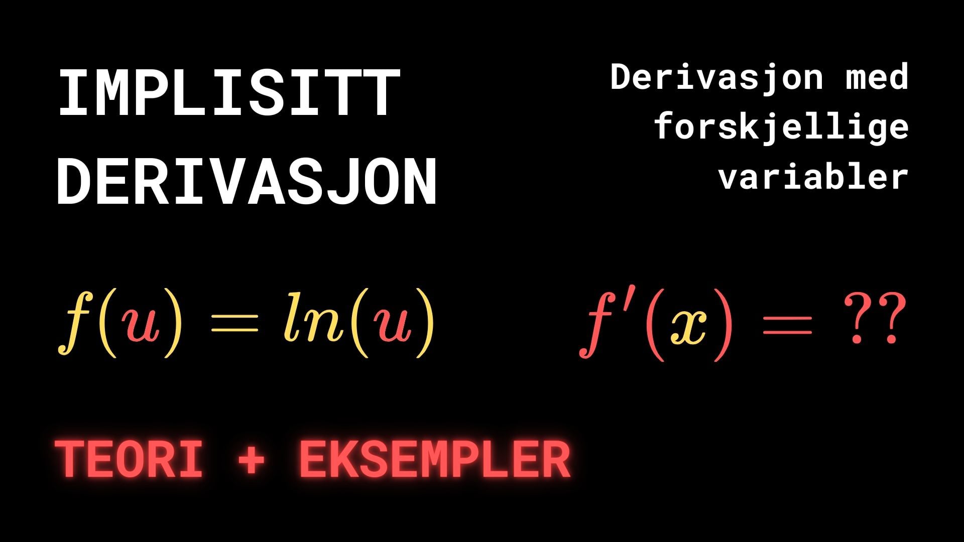 Kort forklart er implisitt derivasjon det samme som kjerneregelen, bare at vi hopper over noen steg. Se hvordan vi kan derivere en funksjon med forskjellige variabler ved å å bruke implisitt derivasjon.
