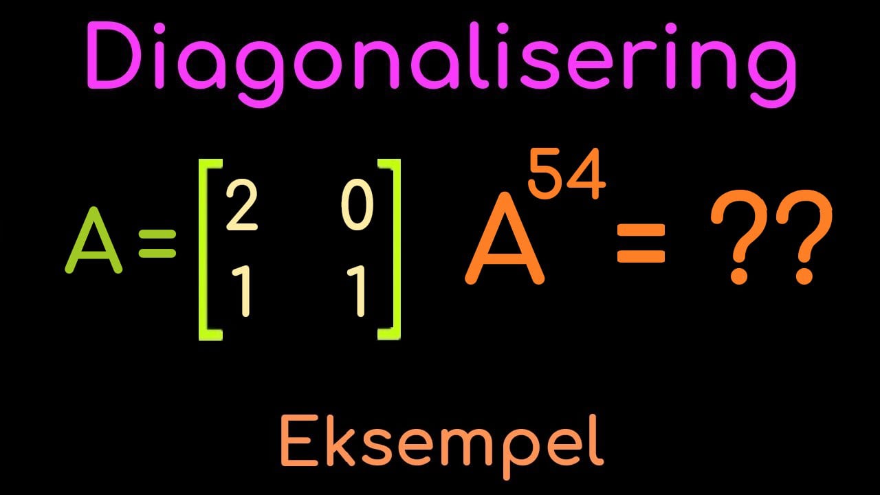 I dette eksempelet går vi kjapt igjennom hvordan vi kan diagonalisere en 2x2 matrise, og helt til slutt løser vi en oppgave ved hjelp av de(n) diagonaliserte matrisen(e). Stay strapped!!