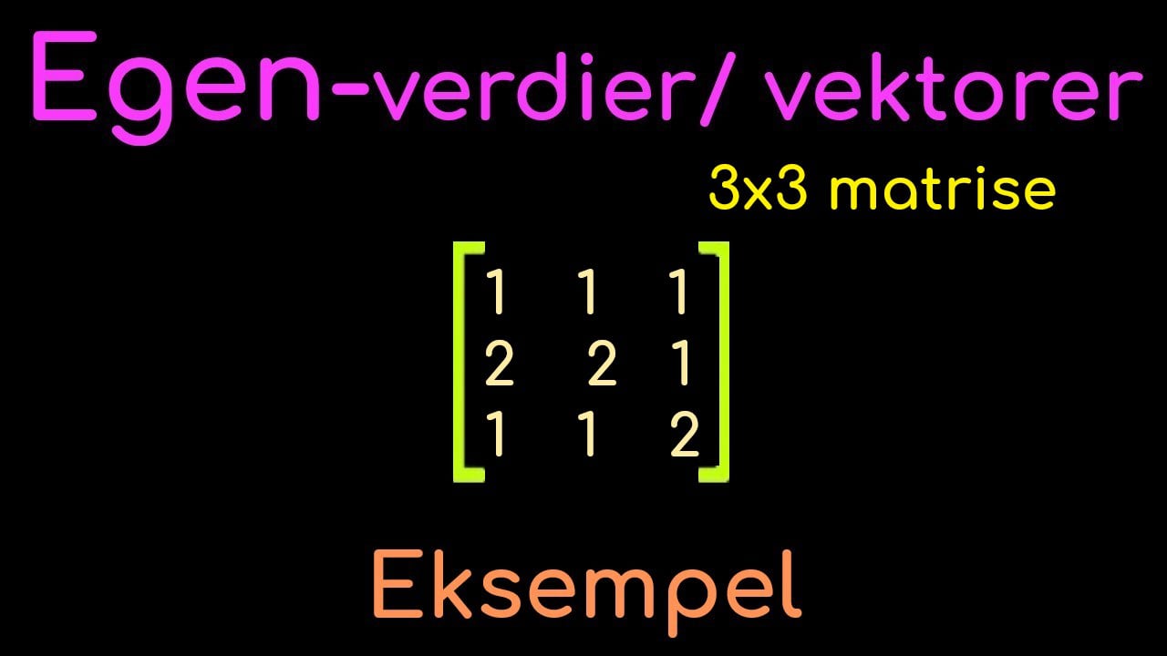 I denne videoen finner vi egenverdiene og egenvektorene til en 3x3 matrise. Vi går igjennom alt, steg for steg... så videoen kan være lang :)