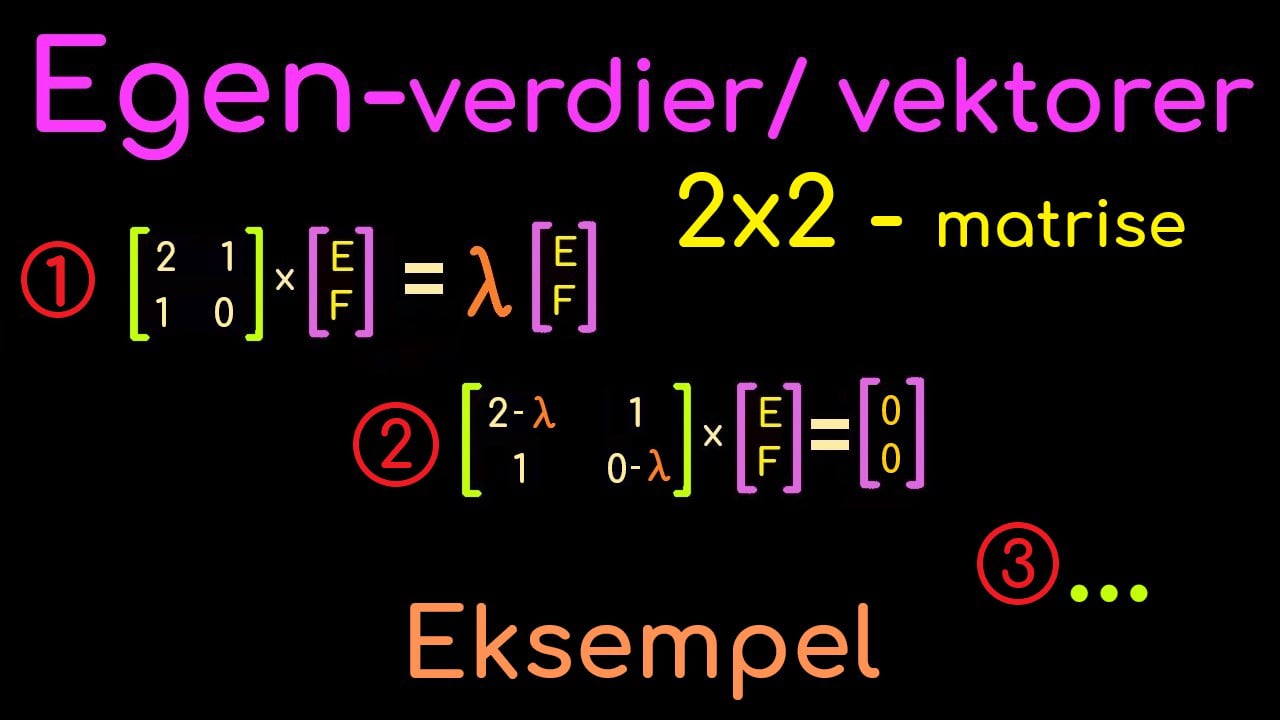 Nå går vi skritt for skritt gjennom et eksempel hvor vi finner egenverdiene og egenvektorene til en 2x2 matrise. Vi går igjennom noen av de mest vanlige feilene og hvordan DU unngår disse!!!