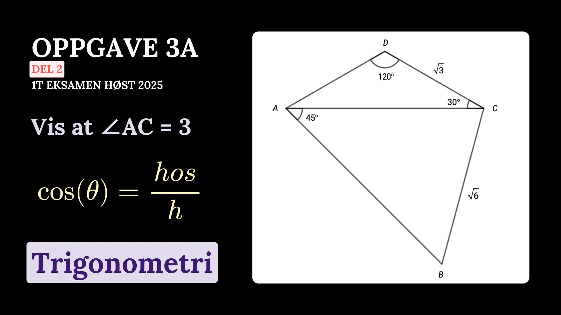 Gitt figuren ovenfor.a) Gjør beregninger og vis at AC = 3.