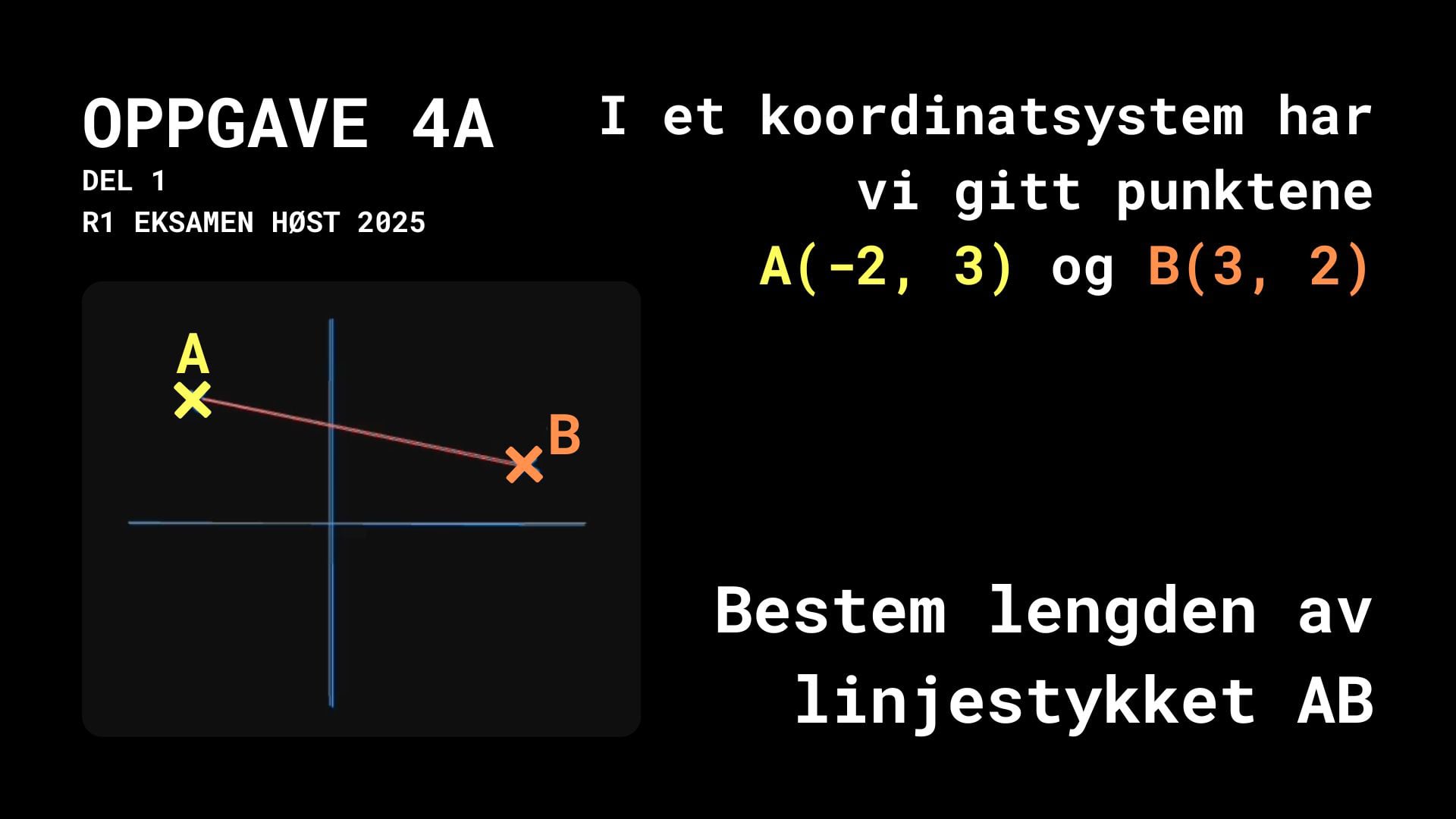 I et koordinatsystem har vi gitt punktene A(-2, 3) og B(3, 2).