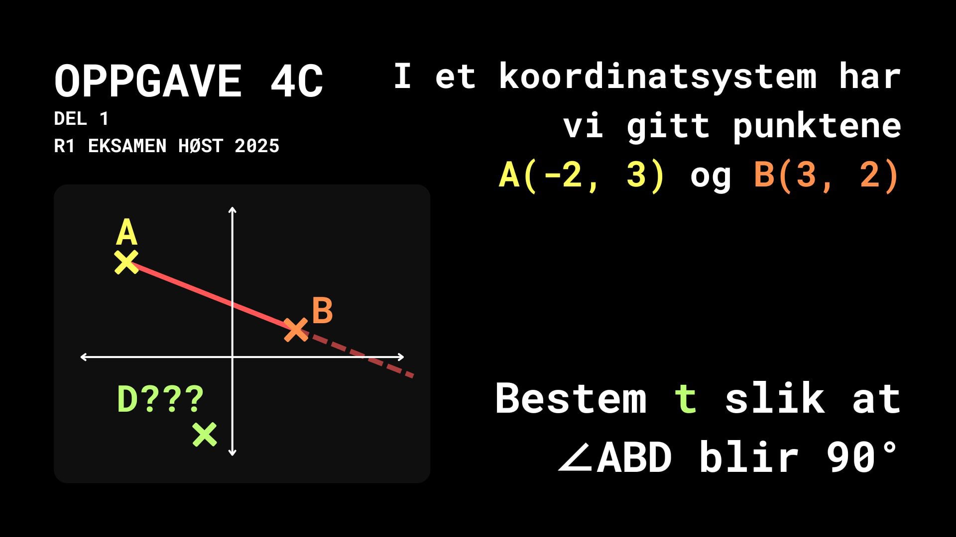 c. Bestem t slik at ∠ABD blir 90°