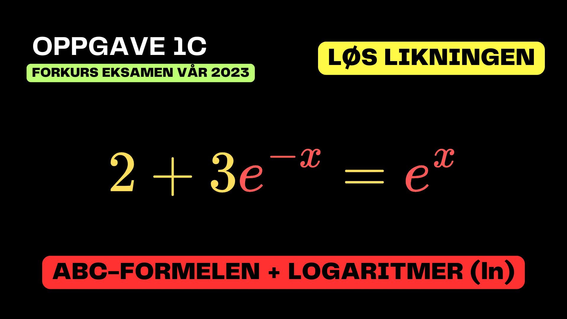 I denne videoen løser vi likningen ved substitusjon. Vi erstatter e^x med variabelen u, løser for u, og deretter finner vi x.
