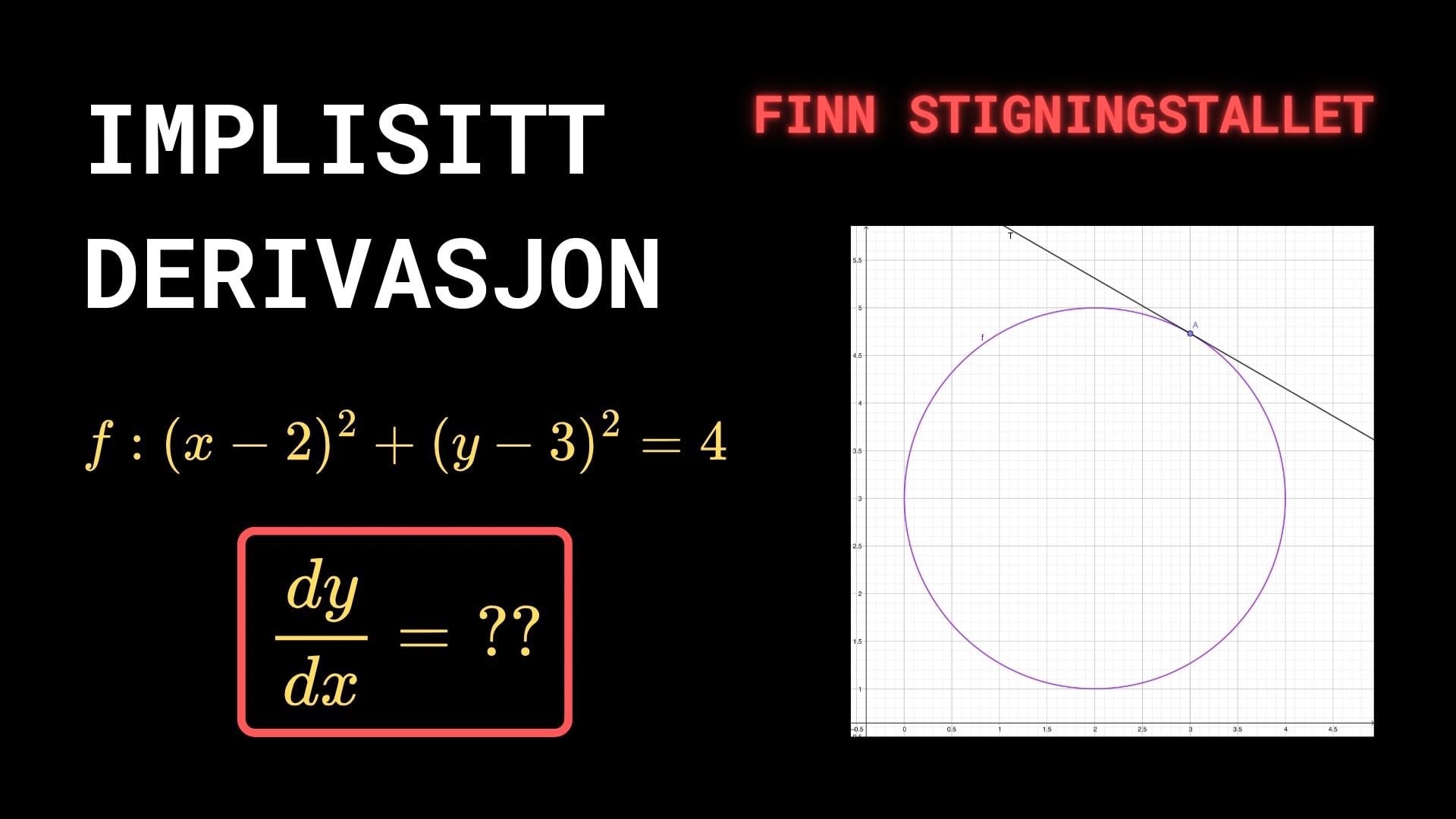 Finn stigningstallet ved hjelp av Implisitt Derivasjon